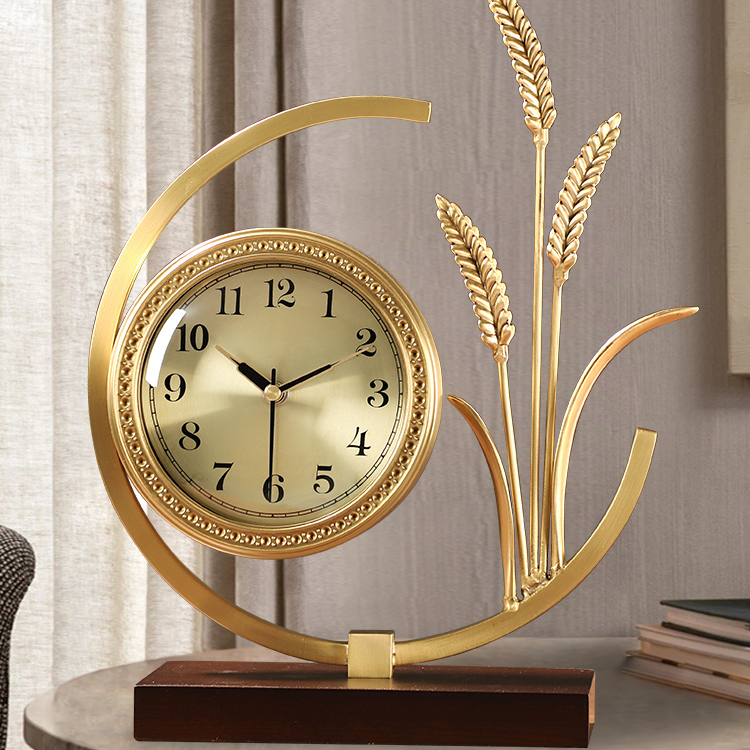 Retro Pendulum Clock-Q36- Living Room Home Desk Clock Wheat Ear Retro Pendulum Clock Silent Desktop Clock Sitting