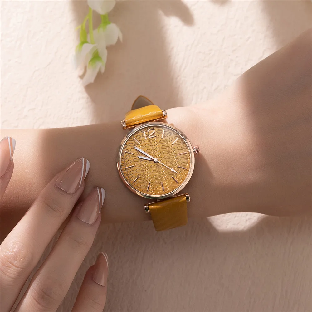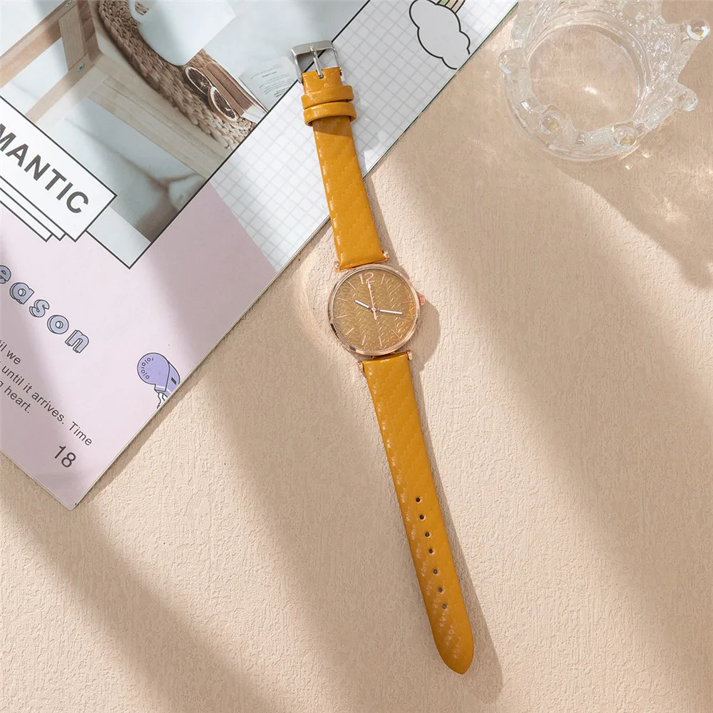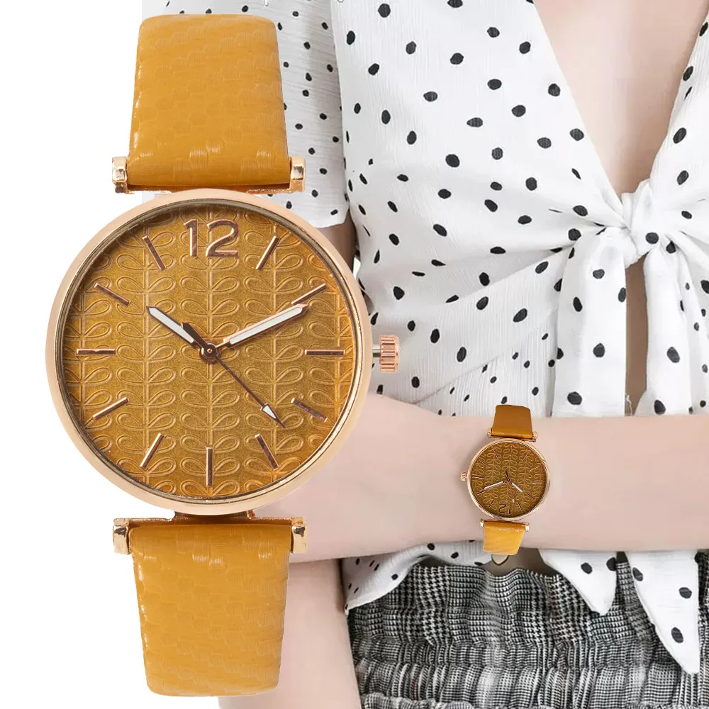 Fashion Simple Ladies Branded Watch Luxury Yellow Round Waves Women Quartz Watches Casual Ladies Gift Clocks