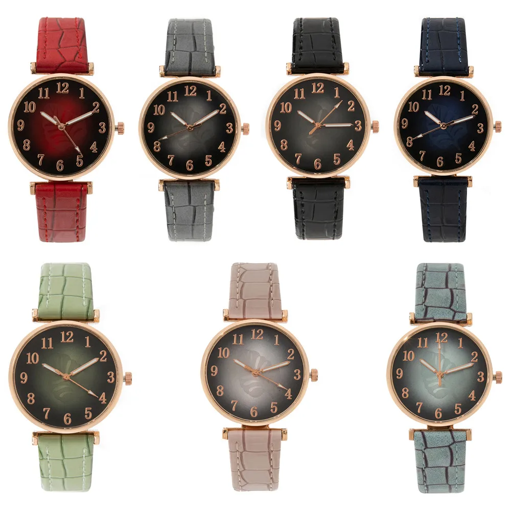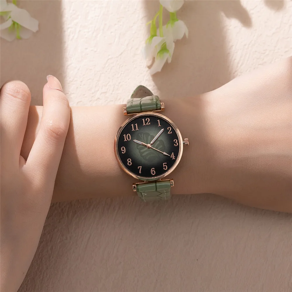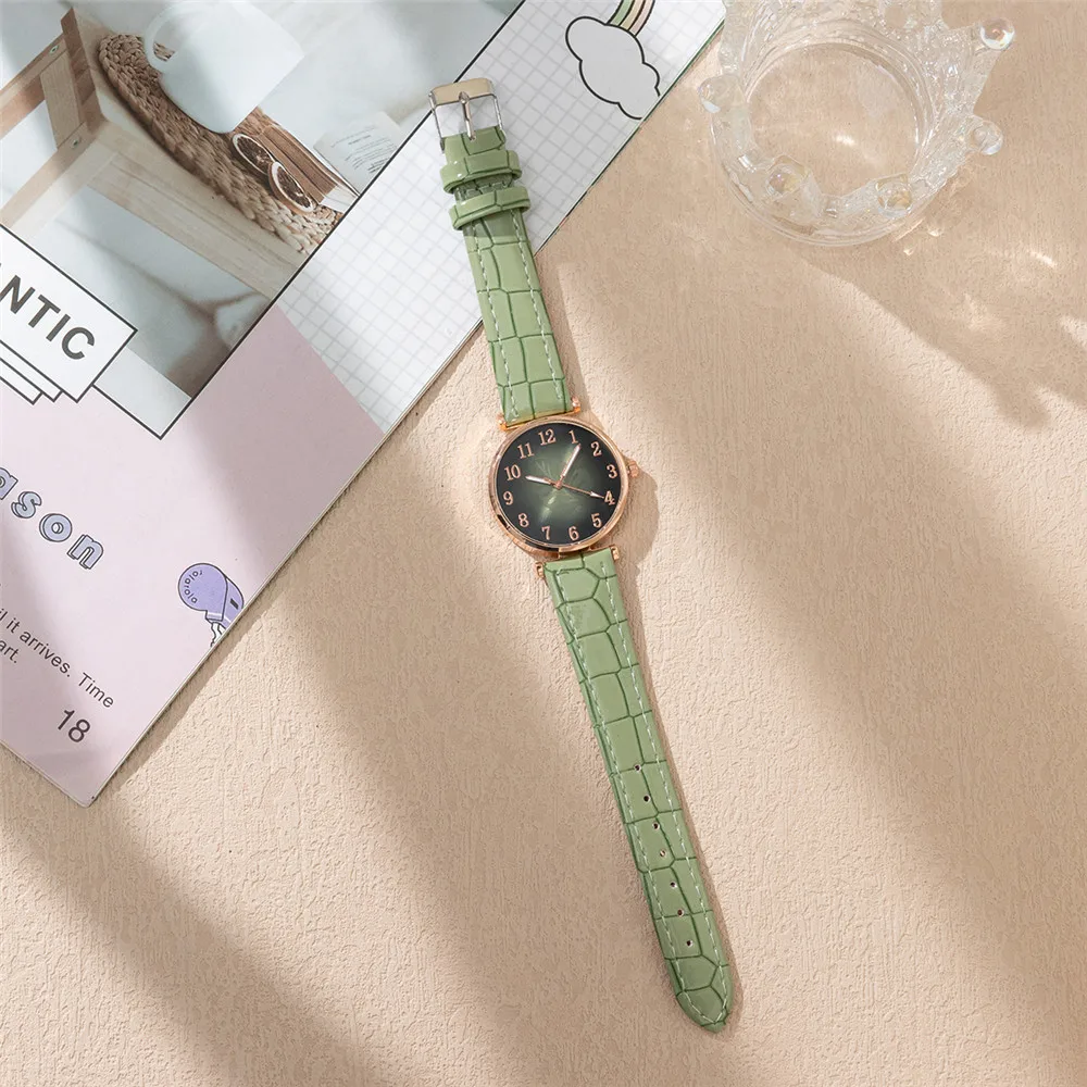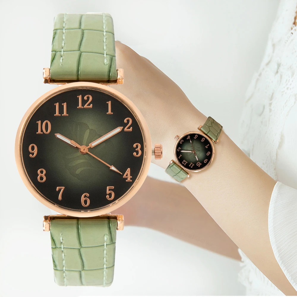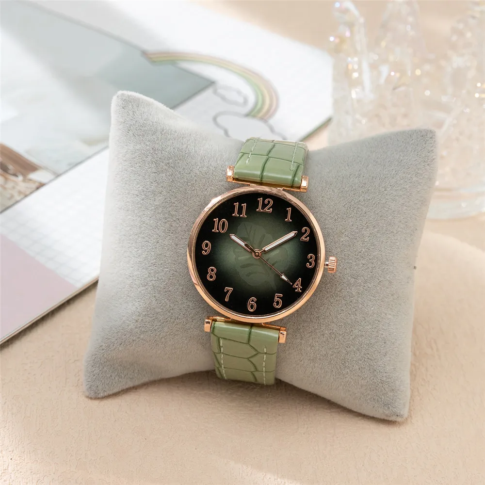 Simple Green Leaves Digital Style 2023New Women Branded Quartz Watch Casual Leather Strap Ladies Clock Dress Watches